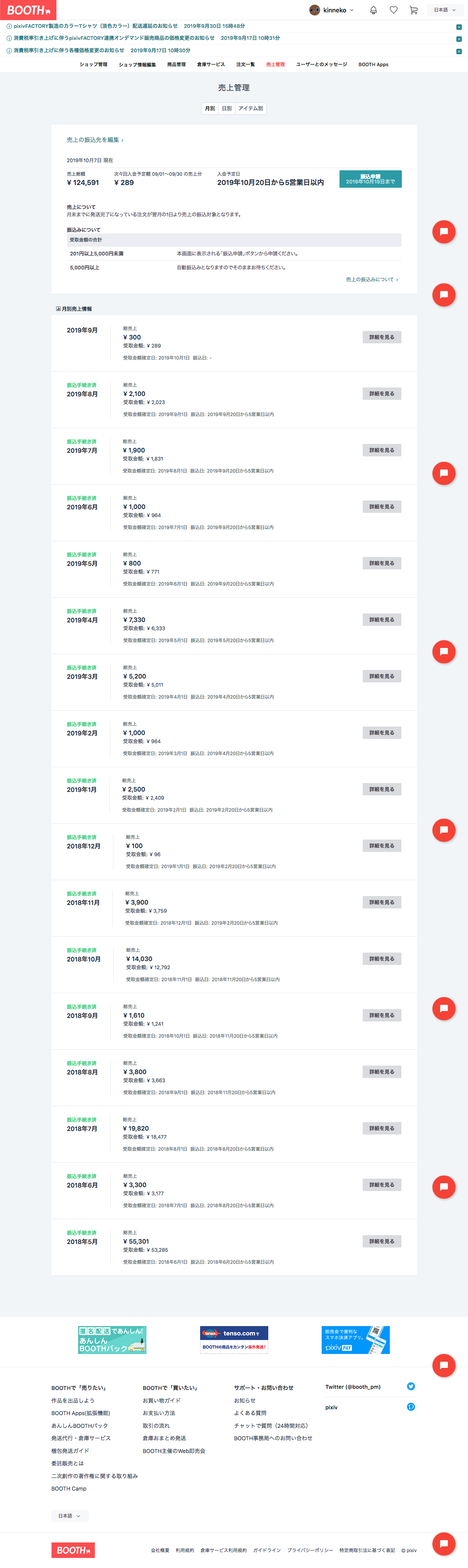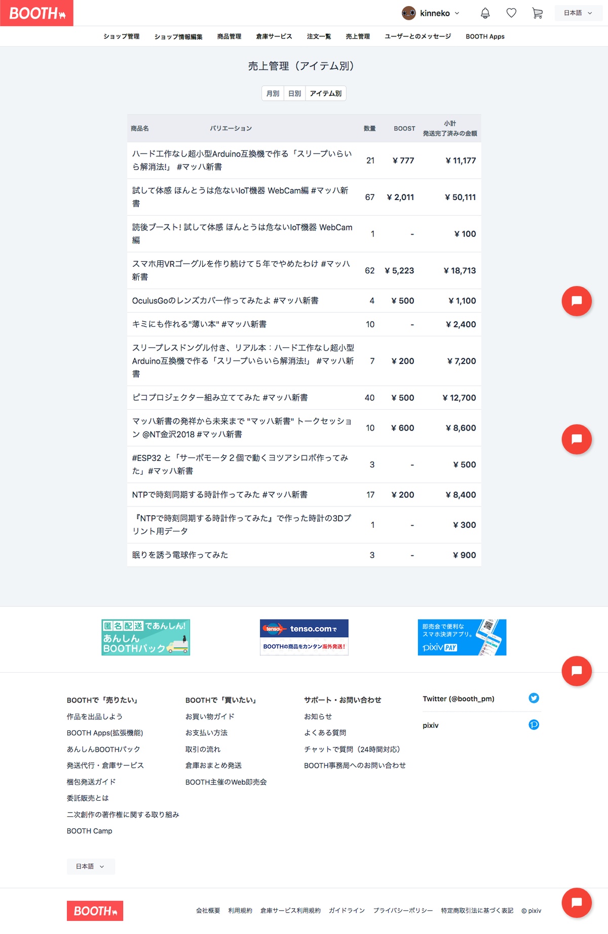2018年5月にBOOTHを使い始めてからの販売状況|kinneko|pixivFANBOX