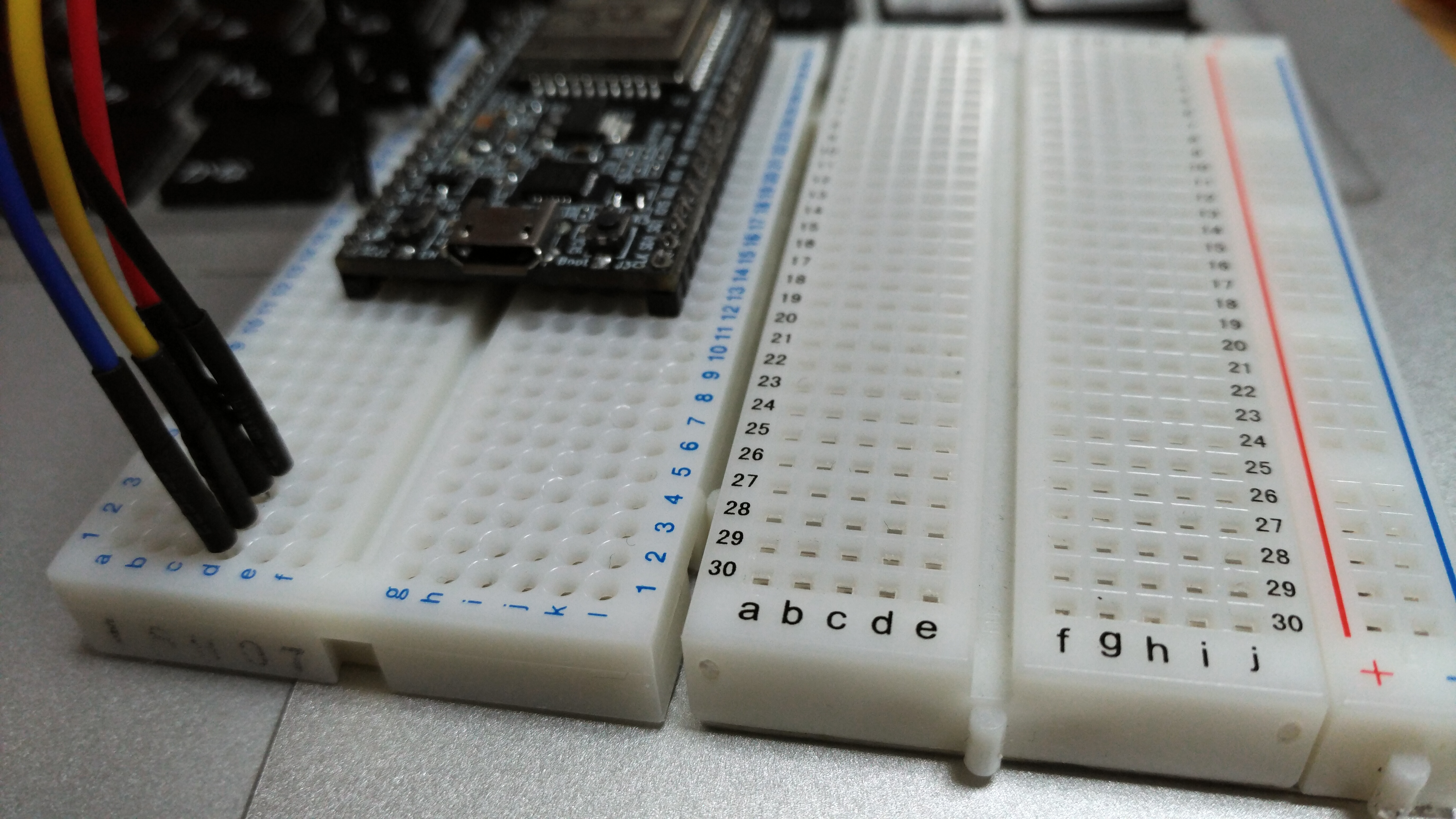 ESP32-DevKitCやNodeMCU-32Sを使ってブレッドボード工作をする場合、一般的なブレッドボード(左右5ピン+電源2ピンx2)では、モジュールを差し込んだ時に、基板の片側のピンしか使うことができず、もったいないし、実装する機能によっては使えるピンが不足してしまう。