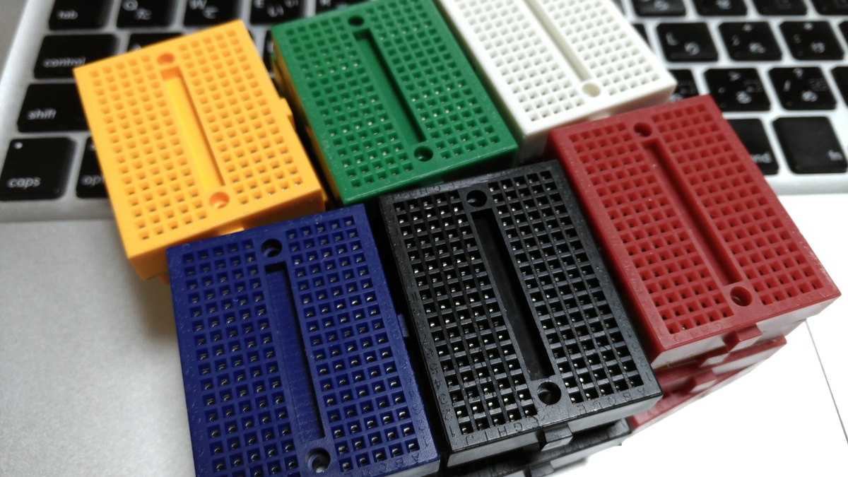最初は、ブレッドボード用の板バネを輸入して、ブレッドボードの樹脂部分は3Dプリンタで出力することを目論んで、試作なども行ってみていた。