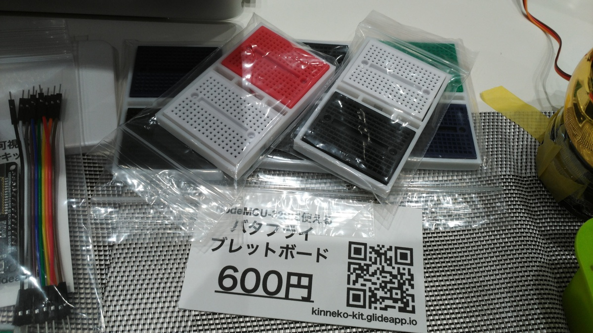 現在は、イベントで頒布しているNodeMCU-32Sを使った全てのキットにバタフライ・ブレッドボードを採用している。