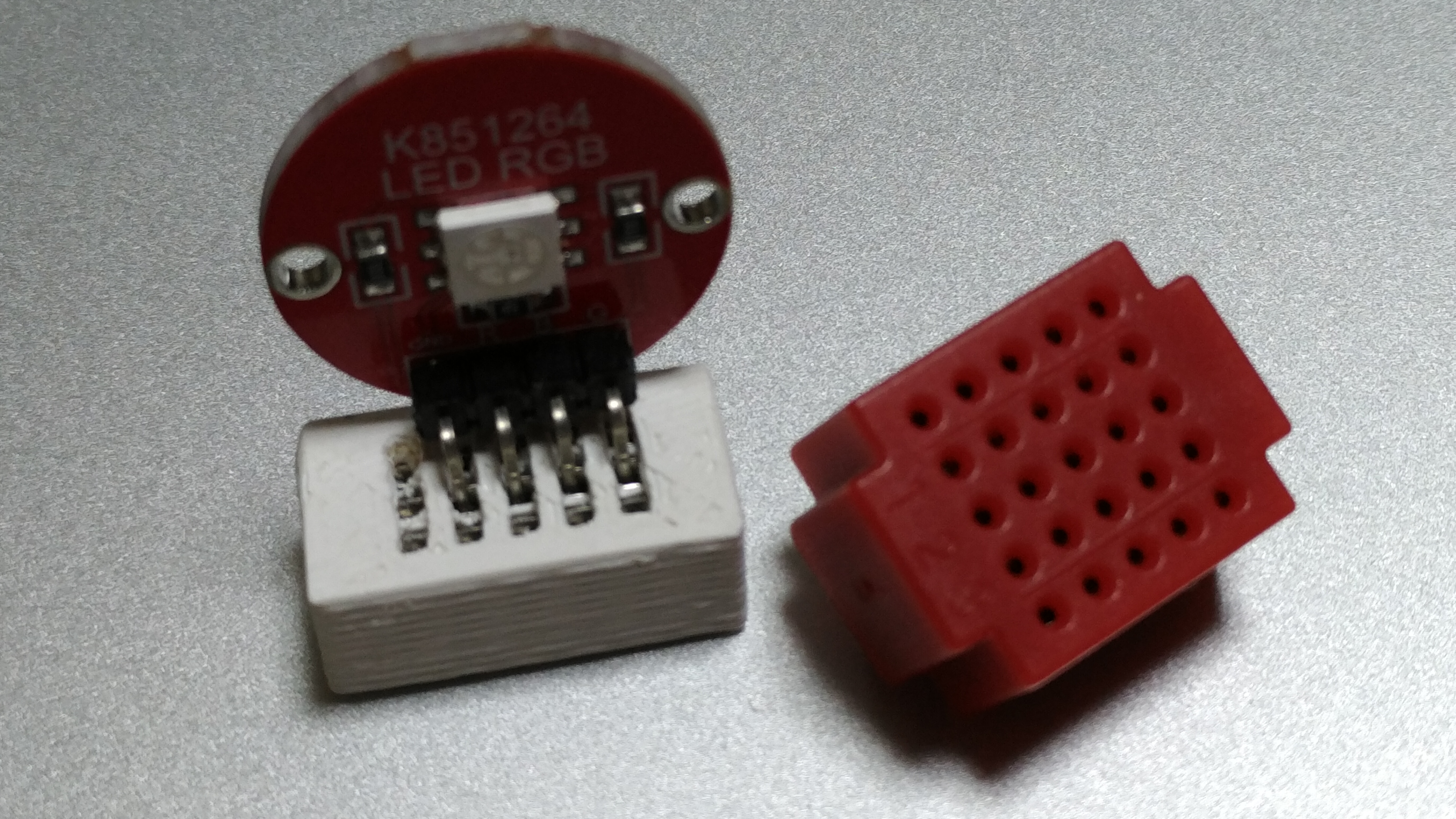 使えるピン数を増やすために、2つのミニブレッドボードの間にはさむ連結スペーサーを3Dプリントしてみた。しかし、これだけでは2つのボードを固定することは難しかった。
