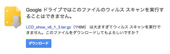 ダウンロード時にウイルススキャンができない警告が出るが、ダウンロードボタンで続行する。