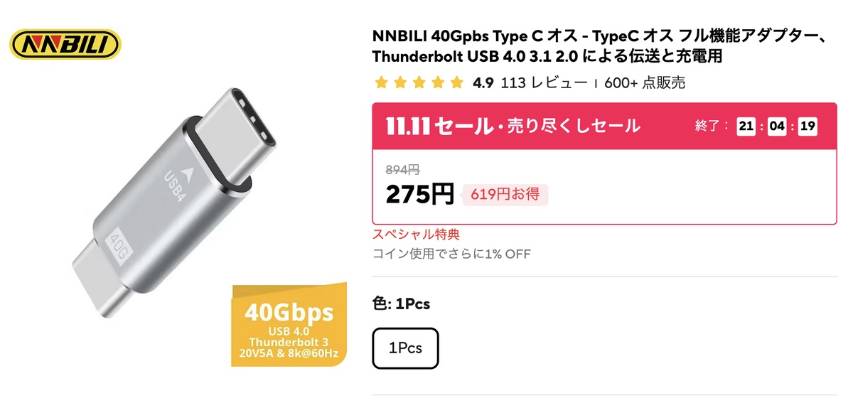 Aliexpressをつらつらと散歩していると、なんか使えそうなものを見つける。 ケーブルというより、アダプタジャンルになる感じ。 前に探したときには見かけなかったのだけど、たぶん探し方が悪かったのだろう。